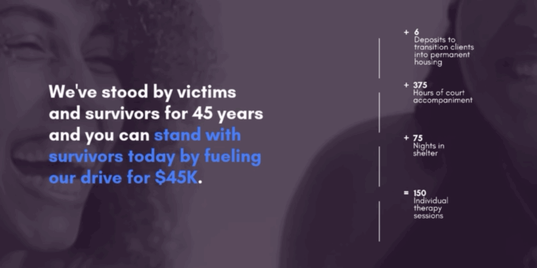 Domestic violence takes 4 lives every day. Your donation allows us to provide critical services for survivors of domestic abuse. Whether you choose to make a one-time donation or become a monthly supporter, your gift enables us to offer essential resources to survivors and work toward ending domestic violence in our community.